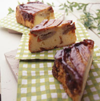 用意した型に3を注ぎ、半割りにしたバナナを並べる。