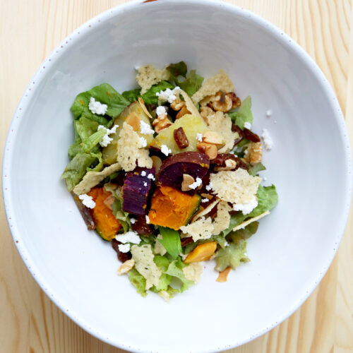 - ナッツ類はお好みでローストしておく。芋類は一口大に切り、蒸しておく。
